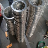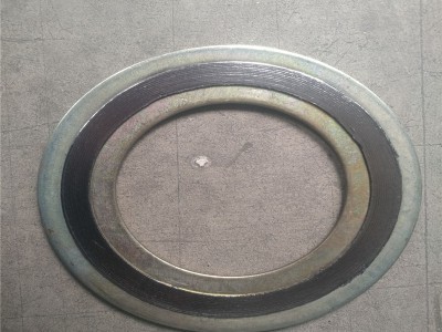目前應(yīng)用最廣泛的一種密封墊片,為半金屬密封墊片中回彈性最佳的墊片,由V形或W形薄鋼帶與各種填充料如:石墨,四氟等交替纏繞而成。通過(guò)改變墊片的材料組合,可解決各種介質(zhì)對(duì)墊片的化學(xué)腐蝕問(wèn)題。為加強(qiáng)主體和準(zhǔn)確定位采用金屬內(nèi)加強(qiáng)環(huán)和外定位環(huán)形式,利用內(nèi)外環(huán)來(lái)控制其最大壓緊度起到加強(qiáng)的作用并避免基本體的散圈,由于外環(huán)的存在使得墊片安裝起來(lái)更加方便。
